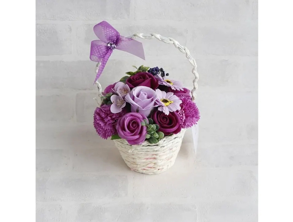バスケットタイプなので、そのまま飾ることができます。 ボリューム満点のお花が可愛いく、見た目ばかりでなく香りも溢れ出します。